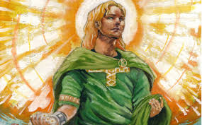'' Thor fue el hijo más conocido de Odín y posiblemente el dios nórdico más famoso en la actualidad. Era el protector de la humanidad y el poderoso dios del trueno, quien blandía un martillo llamado Mjöllnir. Entre los dioses nórdicos, era conocido por su valentía, fuerza, poderes curativos y rectitud, además de su terrible temperamento ''